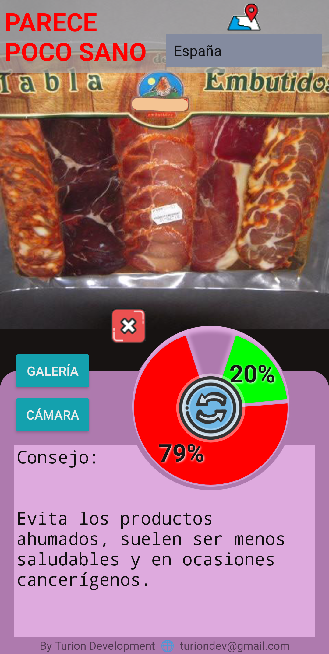 Funciona haciendo uso de redes neuronales, por lo que los resultados son orientativos. Si un paquete de sopa con alto contenido en sal, de pronto el fabricante cambia el dibujo por una sandía... los resultados serán erróneos. Los resultados deben ser interpretados con precaución.